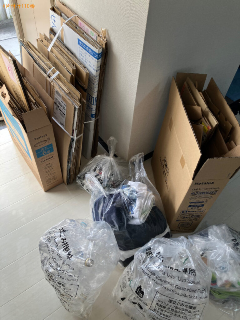 | 担当のコメント | 一般ゴミ、ダンボールの処理にお困りのお客様からご相談いただきました。指定日に回収可能なことがご依頼の決め手になったなったようです。片付け110番では、最短即日のお伺いが可能です。不用品がございましたらまたいつでもご相談ください。 |